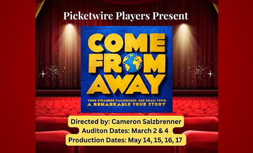 Auditions for Come From Away at Picketwire Center for Performing and Visual Arts will be Monday and Wednesday, March 2nd & 4th from 6:30pm to 8:30pm.
